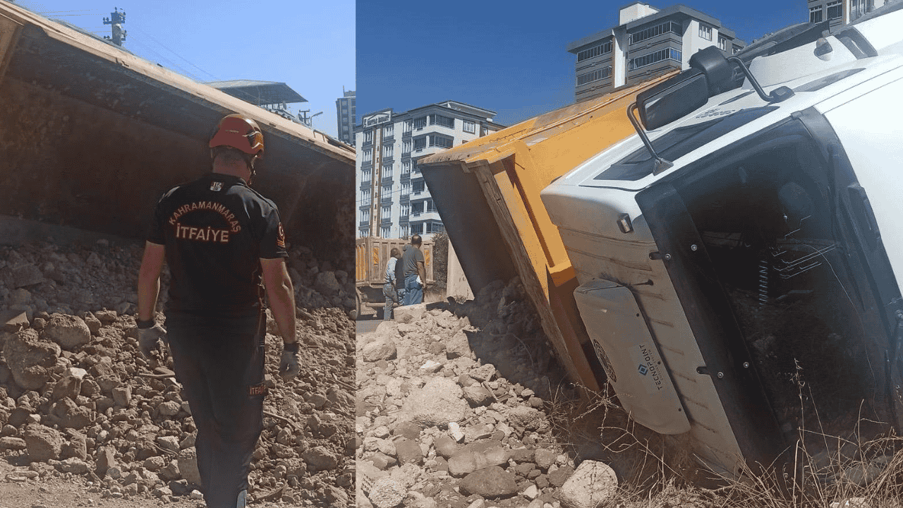 Onikişubat ilçesi Cumhuriyet Mahallesi’nde, hafriyat taşıyan bir kamyonun kontrolden çıkarak devrilmesi sonucu bir kişi yaralandı. Görgü tanıklarının ifadelerine göre, sürücü virajı alırken direksiyon hakimiyetini kaybetti ve kamyon yola devrildi.