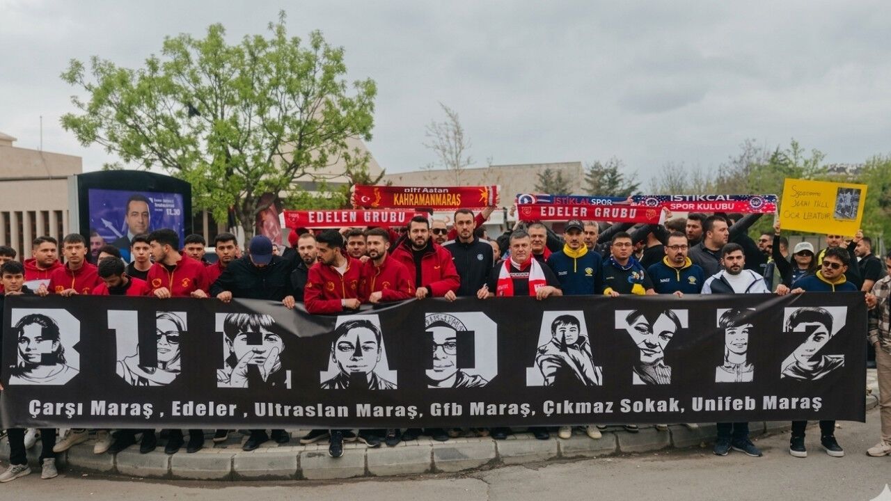 Kahramanmaraş’ı yasa boğan okul saldırısının ardından şehirdeki spor camiası ve taraftar oluşumları, yas sürecinde örnek bir duruş sergiliyor. 19 Nisan 2026 tarihinde gerçekleştirilen anma programı, normal şartlarda sahalarda rakip olan taraftar gruplarının acıda nasıl kenetlenebileceğini gösterdi. Şehrin en köklü taraftar grupları olan Edeler Grubu ve Çıkmaz Sokak’ın yanı sıra; Beşiktaş, Galatasaray ve Fenerbahçe’nin Kahramanmaraş’taki temsilcilikleri olan Çarşı Maraş, UltraAslan ve Genç Fenerliler, siyah giysileri ve ortak pankartlarıyla Necip Fazıl Kısakürek Kültür Merkezi’nde saf tuttu.