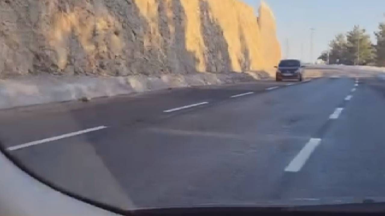 Herhangi bir kazanın yaşanmadığı görüntüde, ters yönde ilerleyen otomobil daha sonra gözden kayboldu.