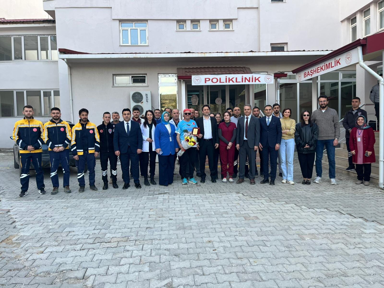 Afşin Devlet Hastanesi bahçesinde gerçekleştirilen programda sağlık çalışanları ve katılımcılar bir araya gelerek Tıp Bayramı’nı kutladı.