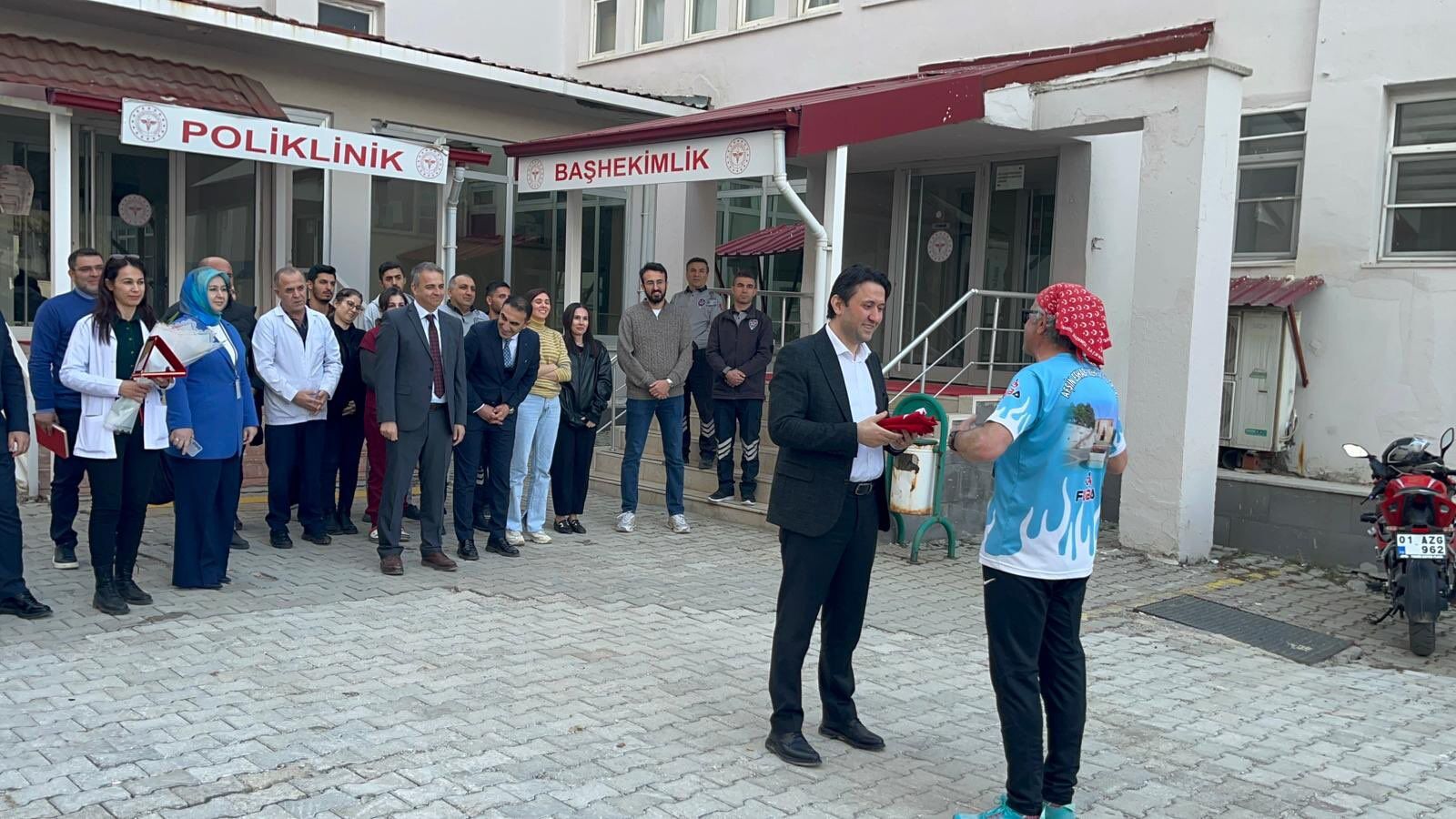 Koşunun bitiş noktası olan Afşin Devlet Hastanesi bahçesinde düzenlenen programda Gönen, taşıdığı Türk bayrağını Kahramanmaraş İl Sağlık Müdürü Uzm. Dr. Vehbi Şirikçi’ye takdim etti. Düzenlenen etkinlikte sağlık çalışanlarının toplum için taşıdığı öneme dikkat çekilirken, Tıp Bayramı dolayısıyla sağlık çalışanlarına teşekkür mesajları verildi.