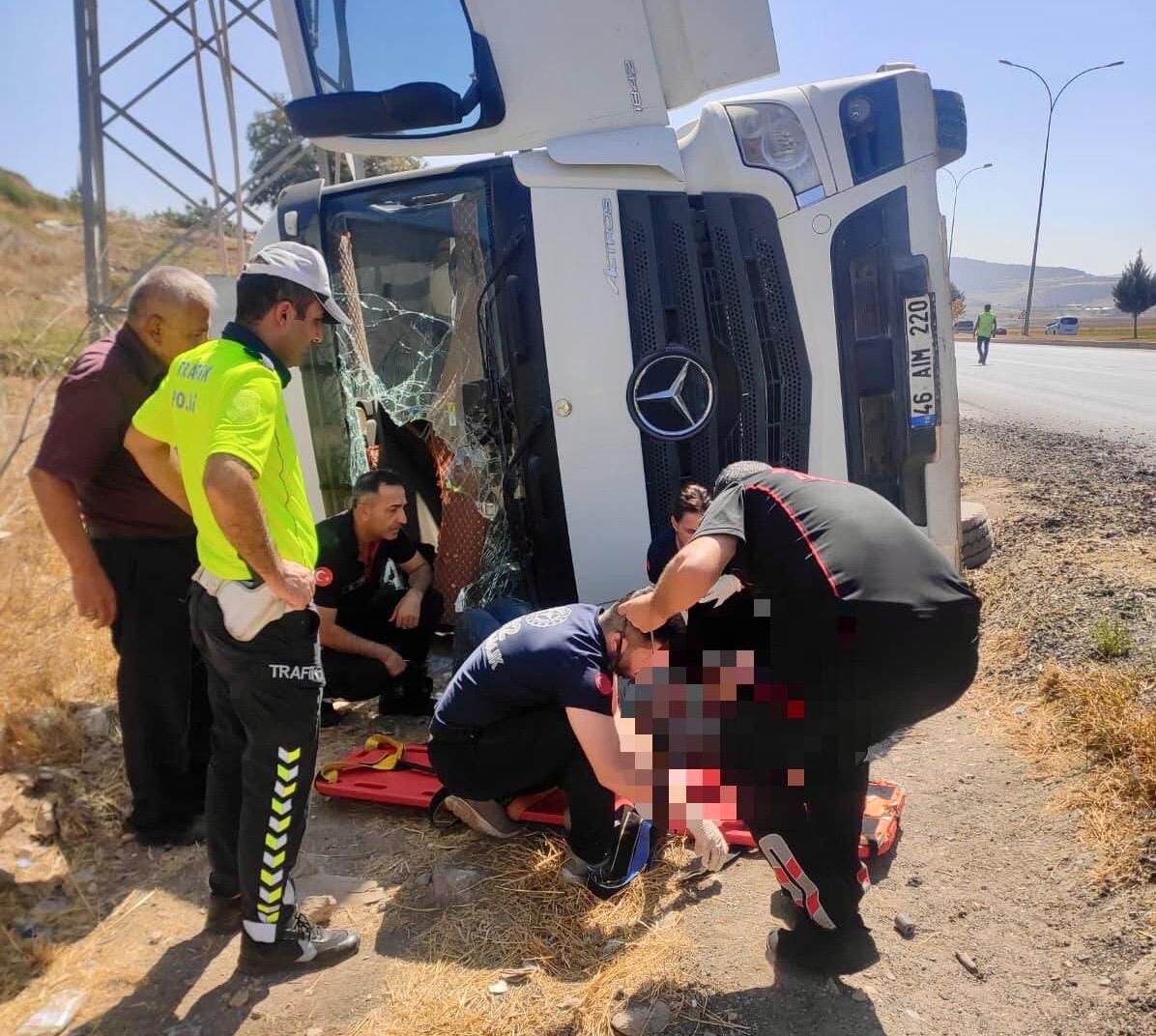 Edinilen bilgilere göre, tır sürücüsü seyir halindeyken henüz belirlenemeyen bir nedenle direksiyon hakimiyetini kaybetti. Kontrolden çıkan araç yol kenarına devrilerek durabildi. Çarpmanın etkisiyle kabinde sıkışan sürücü, olay yerine kısa sürede intikal eden itfaiye ekiplerinin yoğun çabasıyla bulunduğu yerden çıkarıldı. Sağlık ekiplerine teslim edilen sürücü, ilk müdahalenin ardından ambulansla hastaneye kaldırıldı.