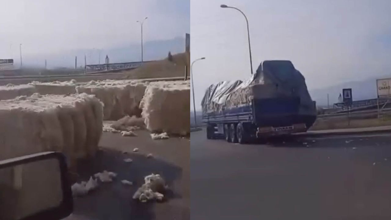 Yola devrilen saman balyaları, polisin güvenlik önlemleri altında forklift ile tırın dorsesine yüklendi. Yaklaşık 1 saat trafiğin tek şeritten verildiği yolda, saman balyalarının dorseye yüklenmesi ile yol tamamen trafiğe açıldı.