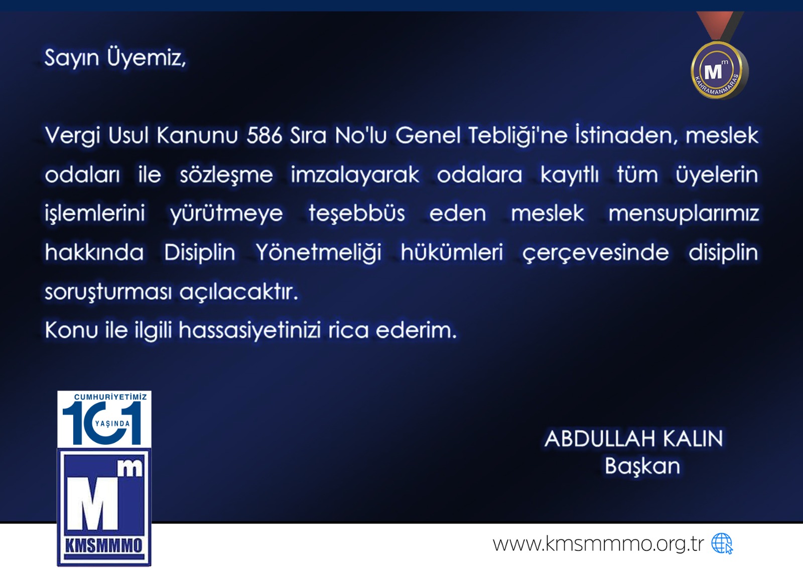 Oda yönetimi, bu tür toplu sözleşmeler yapan mali müşavirler hakkında Disiplin Yönetmeliği uyarınca işlem yapılacağını duyurdu. Başkan Kalın, “Odalarla yapılan bu tür anlaşmalar hakkında elimizde belgeler mevcut. Disiplin Kurulu süreci hızla işletilecek. Hiçbir meslek mensubunun, diğer meslektaşlarının emeğini görmezden gelerek haksız kazanç sağlamasına izin veremeyiz” açıklamasında bulundu.