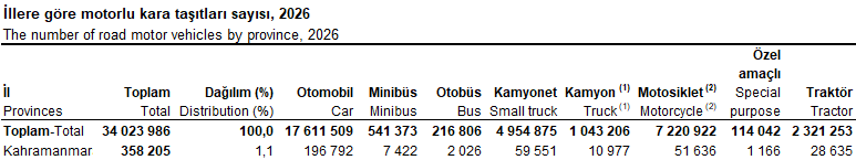 Türkiye genelinde toplam araç sayısı 2026 yılı itibarıyla 34 milyon 23 bin 986’ya ulaşmış durumda. Kahramanmaraş’ın bu dev envanter içindeki 358 bin 205 araçlık payı, şehrin hem ekonomik canlılığını hem de her geçen gün genişleyen ulaşım ağını gözler önüne seriyor. Uzmanlar, araç sayısındaki bu istikrarlı artışın, kentteki altyapı ve yol genişletme çalışmalarının önemini bir kez daha ortaya koyduğunu vurguluyor.