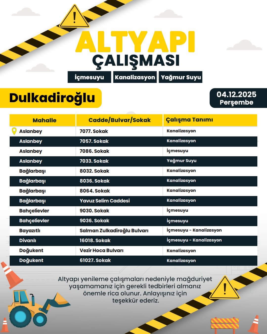 Kahramanmaraş genelinde devam eden altyapı ve üstyapı projeleri, şehrin daha konforlu ve güvenli bir ulaşım ağına kavuşması hedefiyle planlanıyor. Su hatları, kanalizasyon sistemleri, asfalt serimi ve yol düzenleme çalışmaları özellikle ana arterlerde yoğunluk kazanmış durumda. Bu çalışmalar sırasında oluşabilecek olası aksaklıkların önüne geçebilmek için ekipler gece gündüz demeden sahada. Belediyenin trafik bilgilendirmelerini düzenli olarak yapması, hem vatandaşların mağduriyet yaşamamasını sağlıyor hem de çalışmaların daha koordineli ilerlemesine katkı sunuyor.