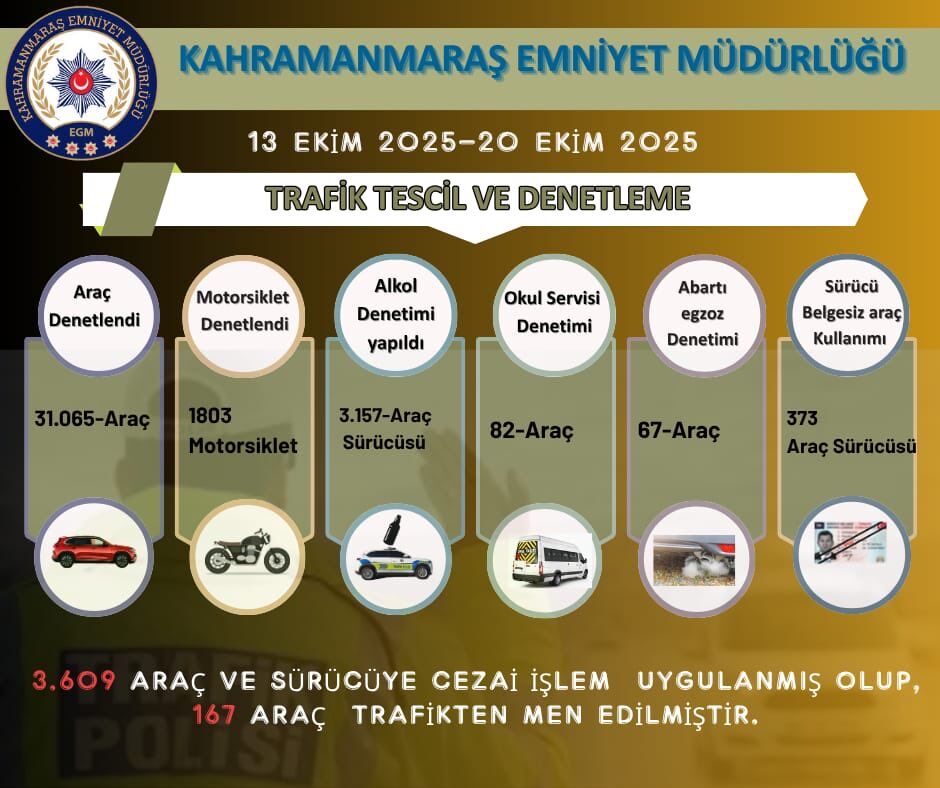 Denetimlerin sonunda toplam 3.609 araç ve sürücüye cezai işlem uygulandı. Kusuru tespit edilen 167 araç ise trafikten men edildi. Emniyet yetkilileri, vatandaşların can ve mal güvenliğini korumaya yönelik bu tarz uygulamaların artırılarak sürdürüleceğini belirtti.