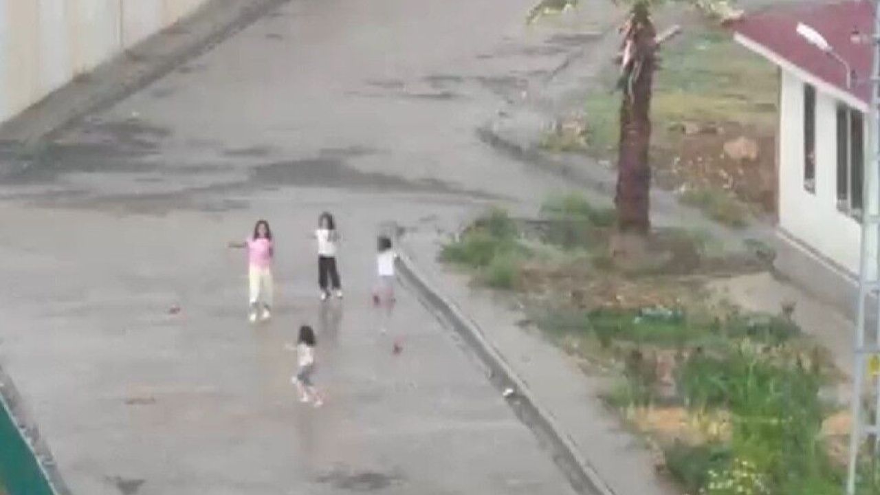 Kahramanmaraş’ın Onikişubat ilçesinde bazı bölgelerde etkili olan yağmur, özellikle çocuklara unutulmaz anlar yaşattı. Kırsal bölgelerde kısa süreli etkili olan yağmur, sokakları adeta oyun alanına çevirdi.