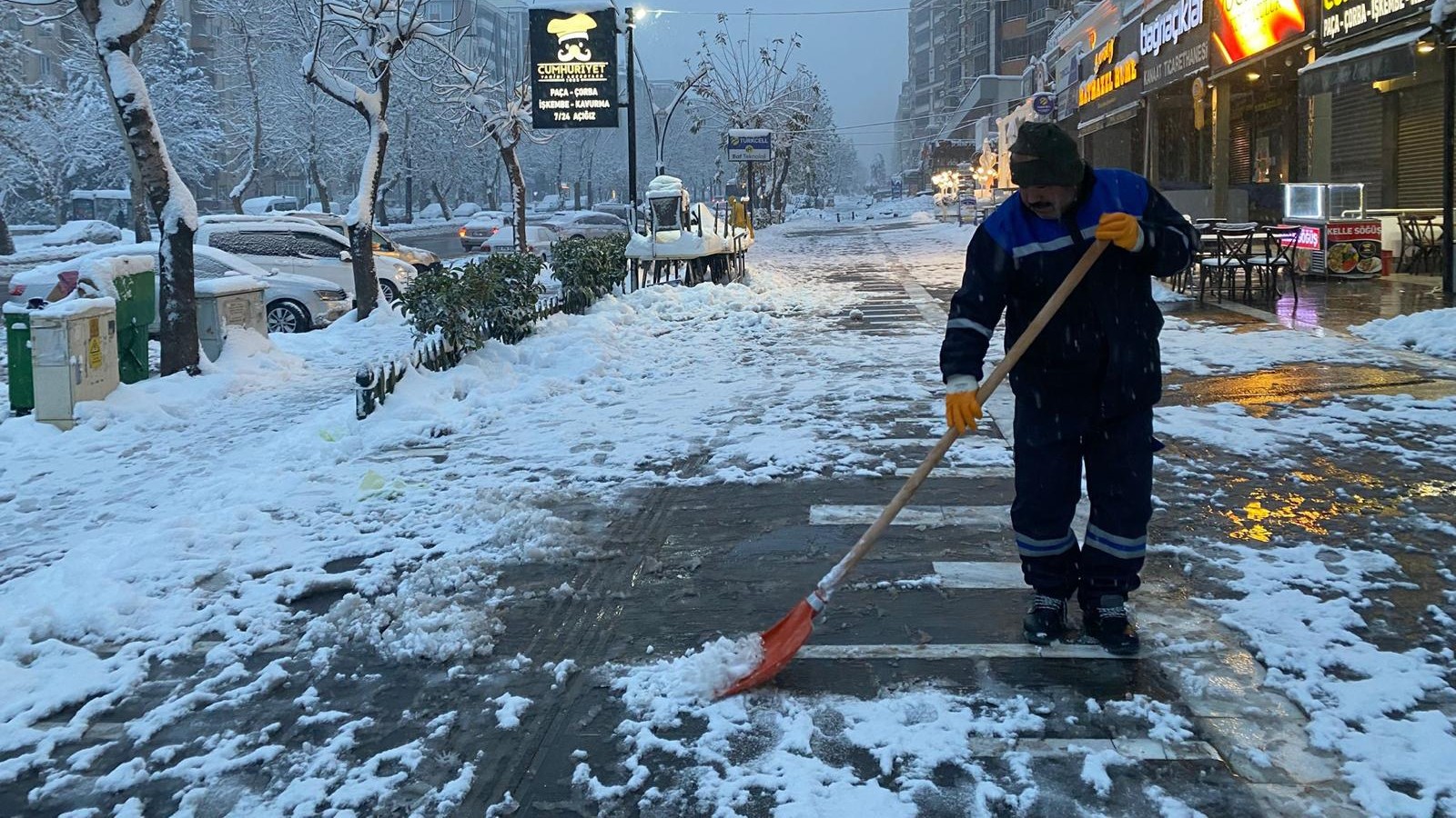 Çevre Koruma ve Sıfır Atık Dairesi Başkanlığı koordinesindeki temizlik çalışmalarına, toplam 200 personel katılıyor. Yaya geçitleri, hastane çevreleri, kamu kurumlarının önleri ve yoğun kullanılan yürüyüş yolları gibi kritik alanlarda kar birikintileri titizlikle temizleniyor. Böylece kar ve buzlanma nedeniyle oluşabilecek kayma ve düşme riskleri en aza indirilmeye çalışılıyor.