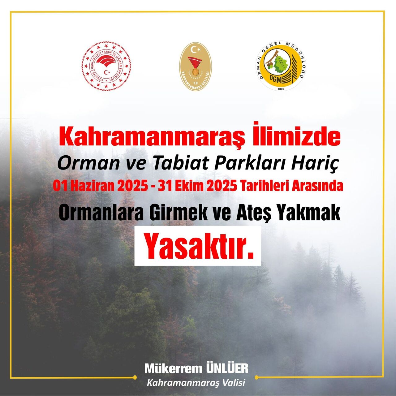 Kahramanmaraş Valiliği tarafından alınan karara göre; orman yangınları açısından yüksek risk taşıyan yaz döneminde, vatandaşların ormanlara girişine sınırlama getirildi. Alınan önlem, orman ekosisteminin korunması ve olası yangınların önüne geçilmesi amacıyla yürürlüğe girdi.