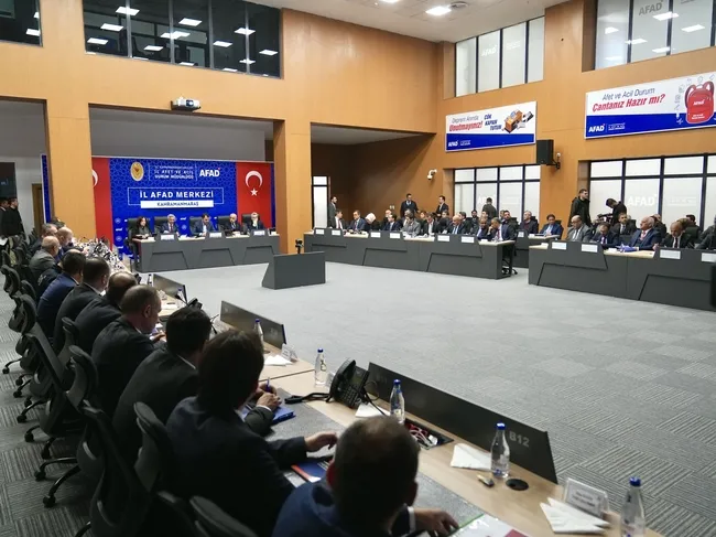 Bakan Kurum Kahramanmaraş temasları kapsamında AFAD binasında Kahramanmaraş Valisi Mükerrem Ünlüer, Büyükşehir Belediye Başkanı Fırat Görgel, AK Partili Kahramanmaraş milletvekilleri ve ilçe belediye başkanları ve ilgili kurumların yöneticileriyle toplantı yaptı.