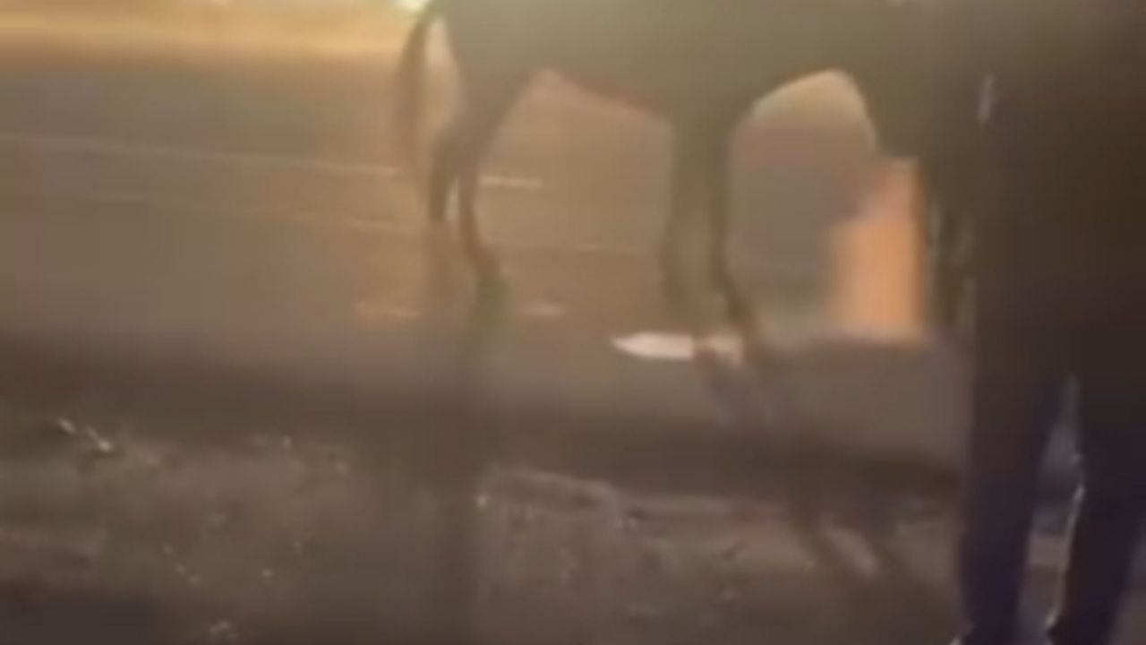 Olay yerindekilere göre sürücünün, atın araca bağlı olduğunu unutarak yola çıktığını söylediği öne sürüldü. Cep telefonu kamerasına yansıyan görüntüler, sosyal medyada kısa sürede yayılırken hayvanın durumu ile ilgili yetkililerden açıklama bekleniyor.