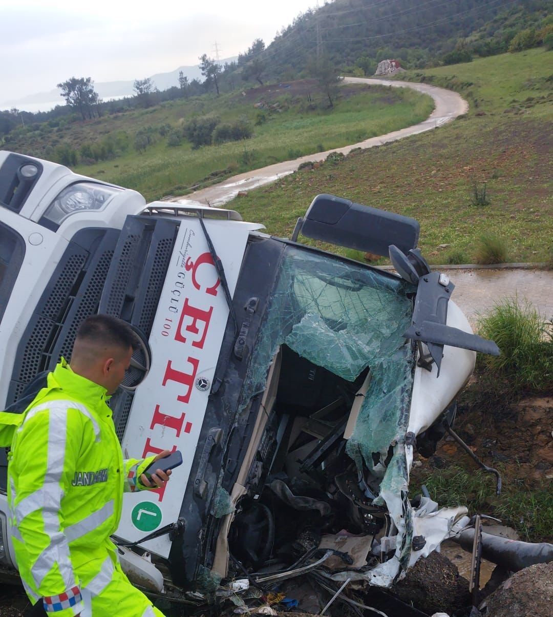 Mersin’in Silifke ilçesinde bugün akşam saatlerinde trafik güvenliğini altüst eden bir kaza meydana geldi. Edinilen bilgiye göre, Silifke’den Mersin istikametine doğru ilerleyen Mehmet Ç. yönetimindeki 20 AKE 120 plakalı çimento tankeri, Akdere Mahallesi mevkiindeki Medcem Kavşağı’na geldiği sırada yağışın etkisiyle kayganlaşan yolda tutunamadı. Sürücüsünün direksiyon hakimiyetini kaybettiği dev araç, savrularak yol kenarında bulunan kanala düştü. Takla atarak ters duran tankerin sürücü kabini büyük hasar alırken, Mehmet Ç. metal yığınına dönen aracın içinde sıkışıp kaldı.