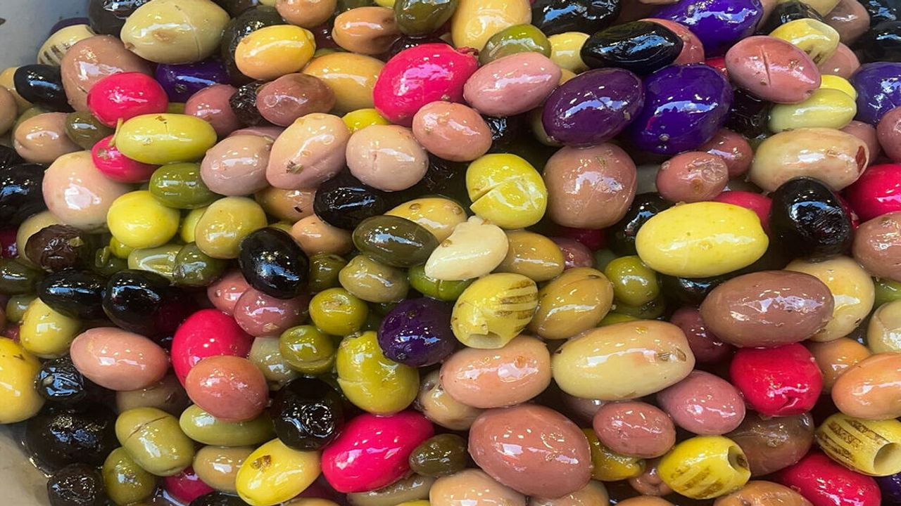 Kilosu 160 liradan satılan bu özel karışım, hem yerli halktan hem de turistlerden yoğun ilgi görüyor. Zeytinin bu renkli hali, Bursa Hanlar Bölgesi’nde tezgâhın önünde uzun kuyruklar oluşturuyor.
