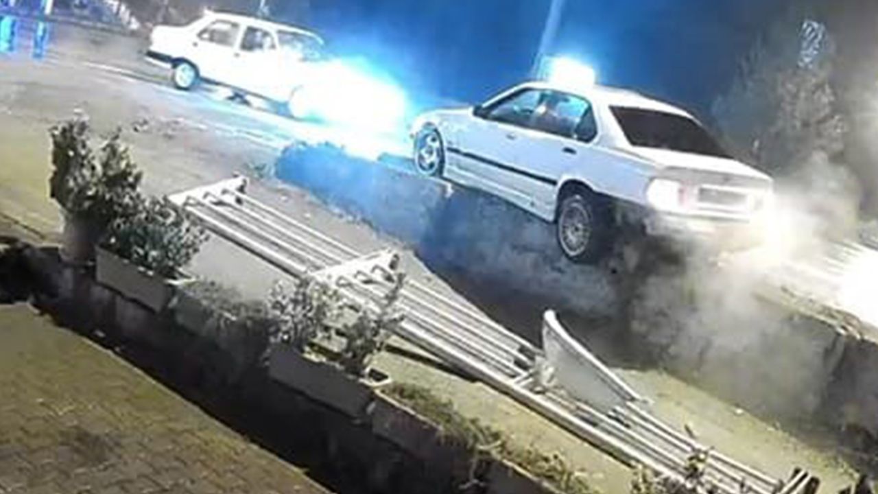 Bu sırada aracını askıdan çıkaramayan sürücü vatandaşların şaşkın bakışları altında aracından inerek hızla olay yerinden uzaklaştı. Yaşananlar ise iş yerinin kamerasına saniye saniye yansıdı.