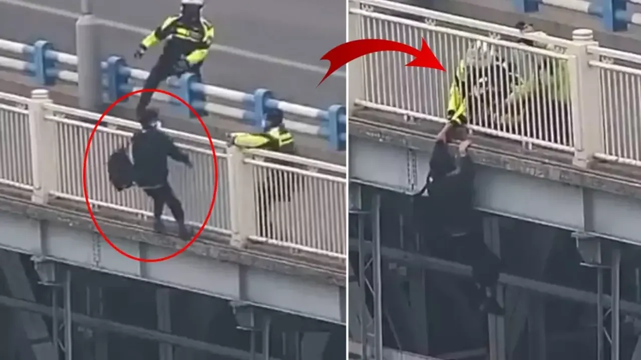 Görüntülerde, polislerin yavaşça aşağı indiği ve adamı ani bir hamleyle ipten alarak güvenli bir noktaya çektiği anlar yer aldı. Müdahalenin ardından adam, sağlık ekiplerine teslim edildi.