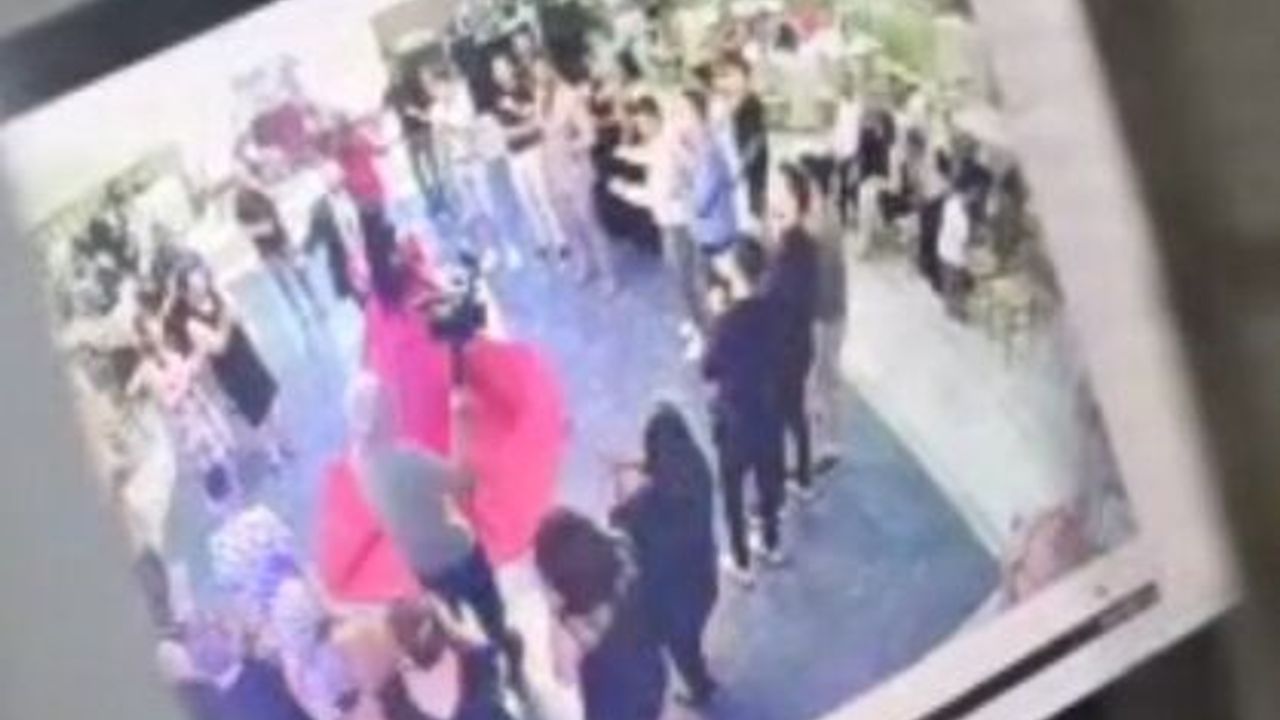 Salonun güvenlik kameralarına yansıyan görüntülerde, çiftin dans ettiği sırada tavandaki avizenin büyük bir gürültüyle yere düşmesi, davetlilerin kaçışması ve gelinin yere yığılması net şekilde görülüyor.
