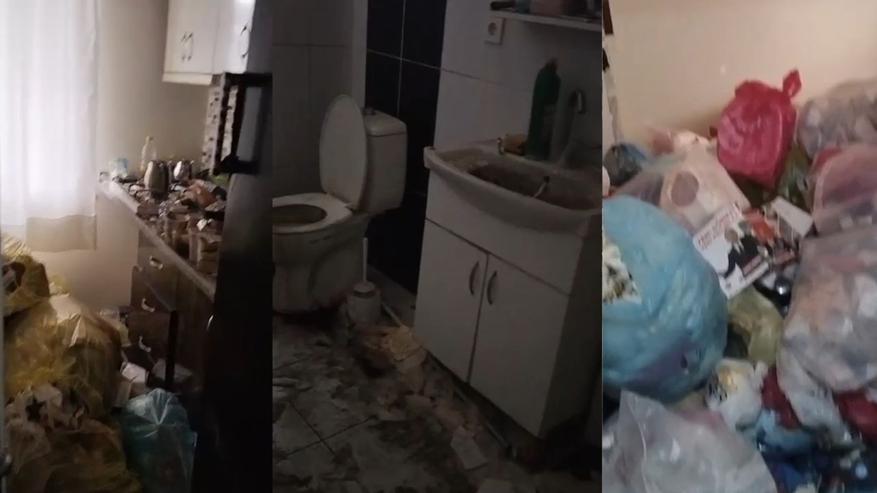 Görüntülerde, dairenin salonundan yatak odasına, mutfağından banyosuna kadar tüm alanların kullanılamaz hale geldiği gördü. Odaların içinde biriken çöplerin yaşam alanlarını tamamen kapladığı, evin hijyen şartlarının tamamen ortadan kalktığı dikkat çekti.