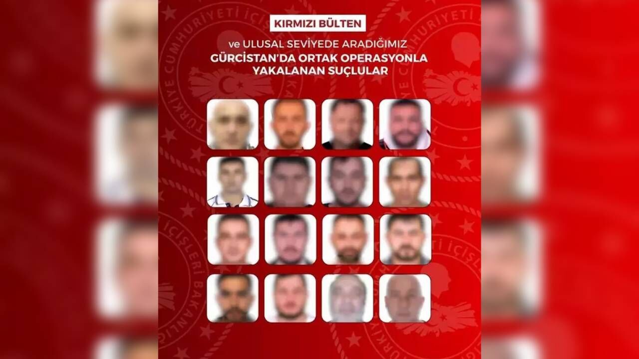Bakanlığın sanal medya hesabından yapılan açıklamaya göre; kırmızı bültenle aranan 13, ulusal seviyede aranan 3 suçlu, Gürcistan polisiyle düzenlenen ortak operasyonlarda Gürcistan'da yakalandı. Emniyet Genel Müdürlüğü Interpol-Europol Daire Başkanlığı, İstihbarat ve KOM Başkanlıkları ile Gürcistan polis teşkilatının katılımıyla kırmızı bültenle aranan R.G., R.C., N.D., R.S., H.Ç., S.E., Y.S., M.A. D.C.B., O.K., O.M., T.F., S.A., ulusal seviyede aranan H.A., U.Ö. ve R.S. yakalandı. Suçluların yurda iade işlemleri başlatıldı.