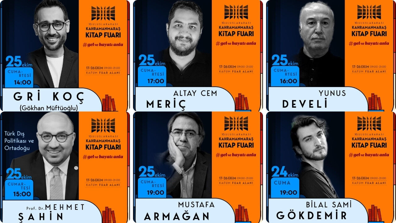 Kahramanmaraş Büyükşehir Belediyesi’nin bu yıl 10’uncusunu düzenlediği Uluslararası Kitap Fuarı, kültür ve sanatla dolu etkinliklerine devam ediyor. KAFUM’da gerçekleşen fuarda 25 Ekim Cumartesi günü, edebiyat, tarih, kişisel gelişim ve daha birçok alanda tanınmış isimler kitapseverlerle bir araya gelecek. Gün boyu sürecek söyleşilerde, hem yetişkinlere hem de gençlere hitap eden konular ele alınacak.