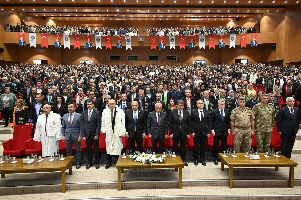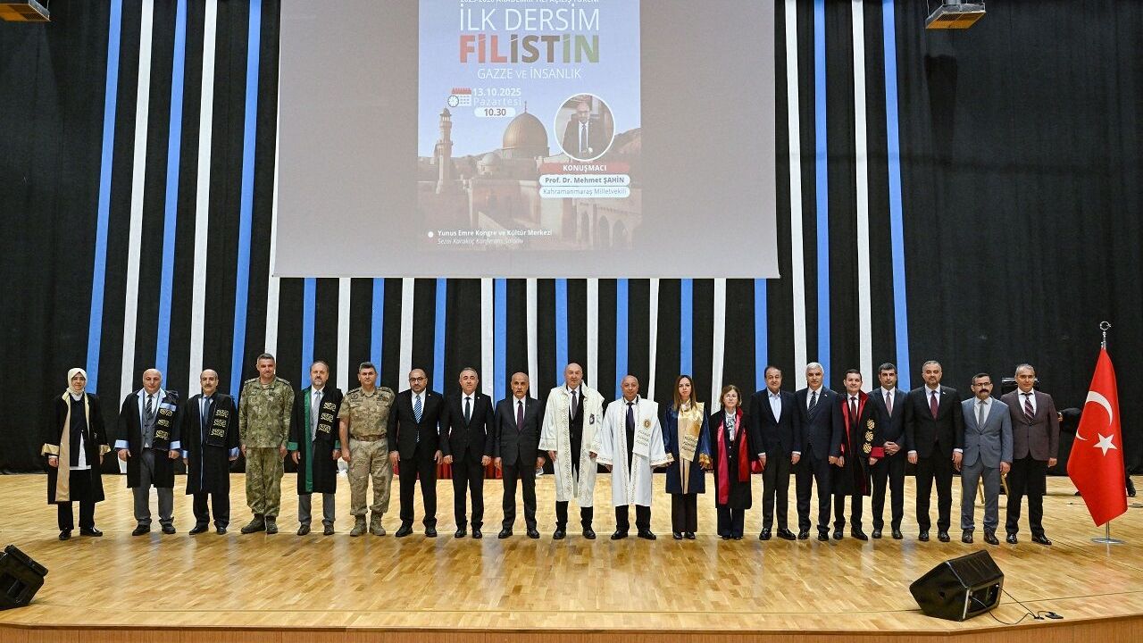 Kahramanmaraş Sütçü İmam Üniversitesi’nde (KSÜ) 2025-2026 akademik yılı açılış töreni, il protokolü, akademisyenler, öğrenciler ve davetlilerin yoğun katılımıyla Yunus Emre Kongre ve Kültür Merkezi Sezai Karakoç Konferans Salonu’nda gerçekleştirildi.
