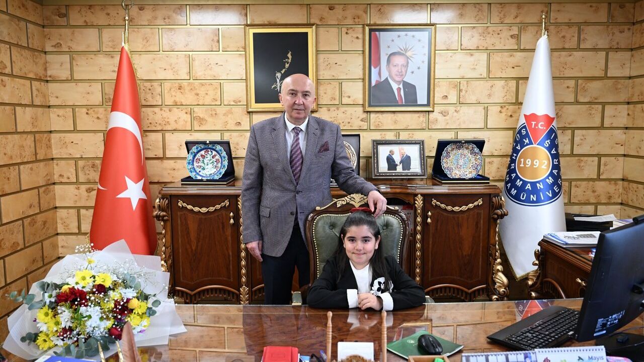 Kahramanmaraş Sütçü İmam Üniversitesi (KSÜ), 23 Nisan Ulusal Egemenlik ve Çocuk Bayramı kapsamında anlamlı bir etkinliğe ev sahipliği yaptı. Rektör Prof. Dr. Alptekin Yasım, rektörlük makamını temsili olarak İsmail Kurtul İlkokulu 4-F sınıfı öğrencisi Gülce Betül Terli’ye devretti.