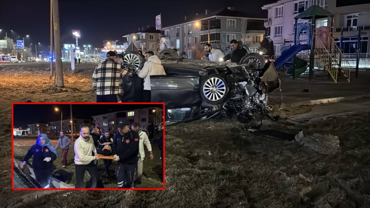 Refüje çıkan otomobil takla atıp ters döndü. Kazayı görenlerin ihbarı üzerine gelen sağlık ekipleri geldi.