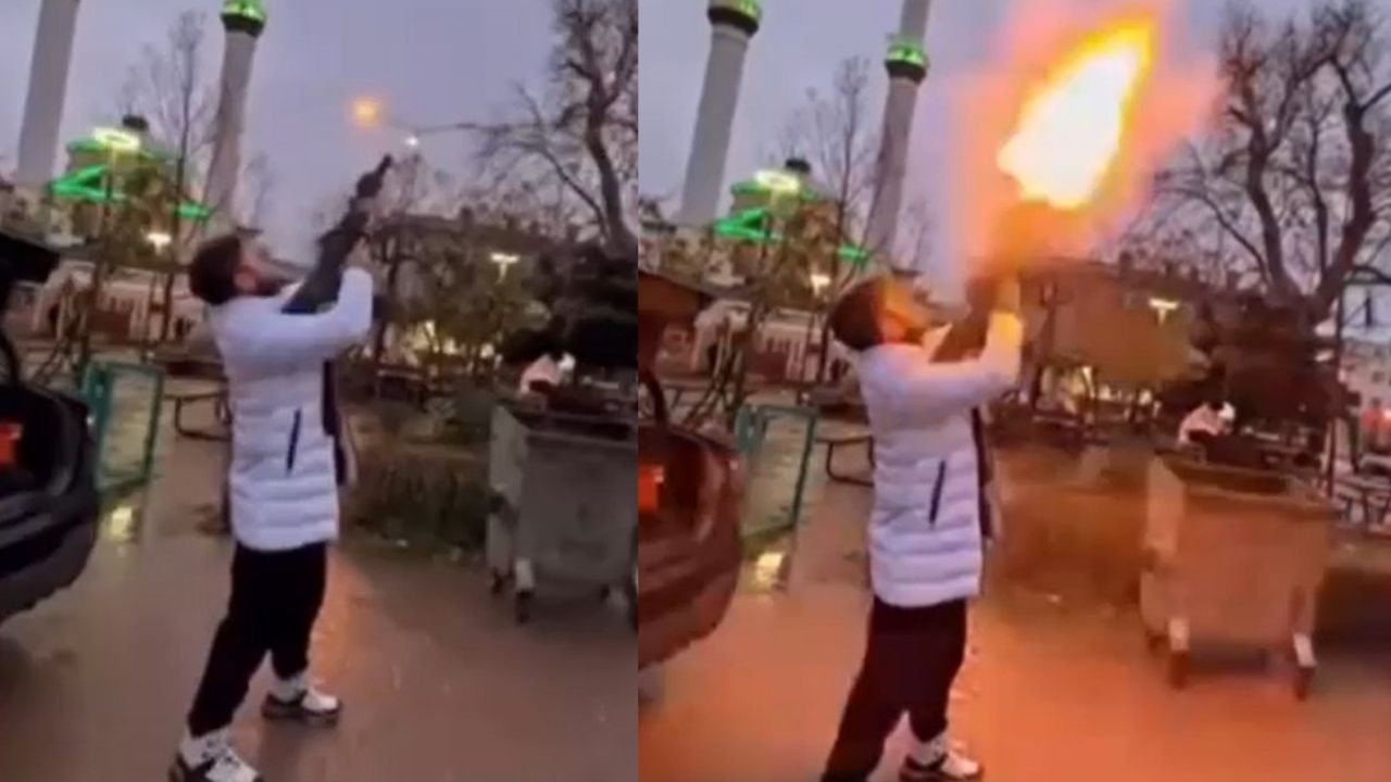 MAHALLE MEYDANINDA HAVAYA ATEŞ AÇTI, GÖRÜNTÜLERİ PAYLAŞTI