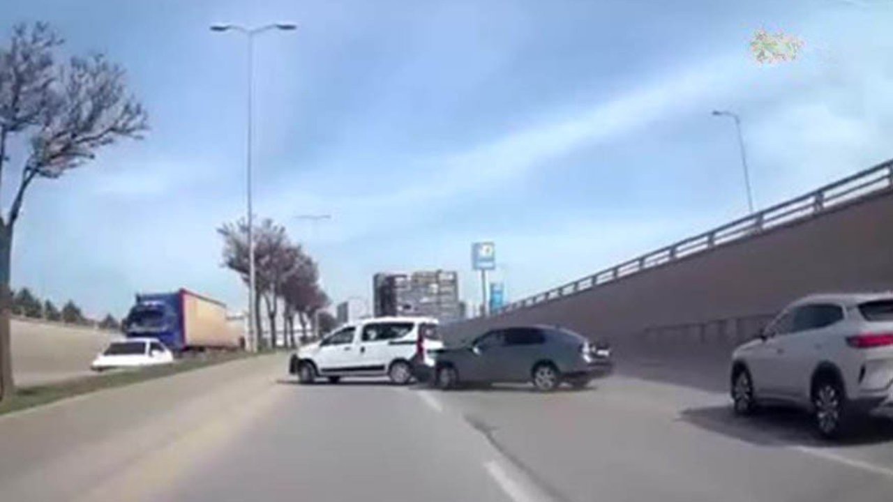 Çarpmanın etkisi ile hafif ticari araç önce bariyerlere çarptı, ardından devrildi. Kaza anı ise trafikte seyir halinde olan başka bir aracın kamerasına yansıdı.