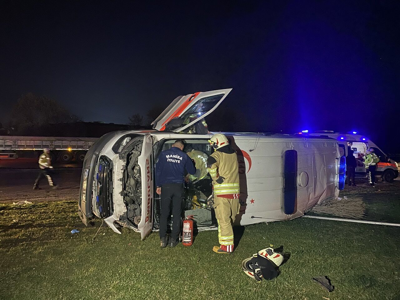 Kaza nedeniyle Manisa Otogar Kavşağı’nda trafik bir süre kontrollü olarak verildi. Yan yatan ambulans ve kazada hasar gören otomobil, çekici yardımıyla yoldan kaldırıldı. Ekiplerin çalışmasının ardından trafik akışı normale döndü.