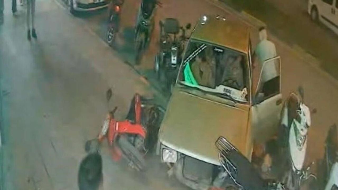 Manisa’nın Alaşehir ilçesinde hız ve gösteriş tutkusu az daha cana mal oluyordu. Atatürk Bulvarı üzerinde drift yaparak ilerleyen bir otomobil, kontrolden çıkarak önce refüjdeki direğe, ardından da park halindeki motosikletlere çarptı. Şiddetli çarpmanın ardından sürücü ve araçtaki iki kişi, hurdaya dönen otomobili bırakıp panik içinde olay yerinden kaçtı.