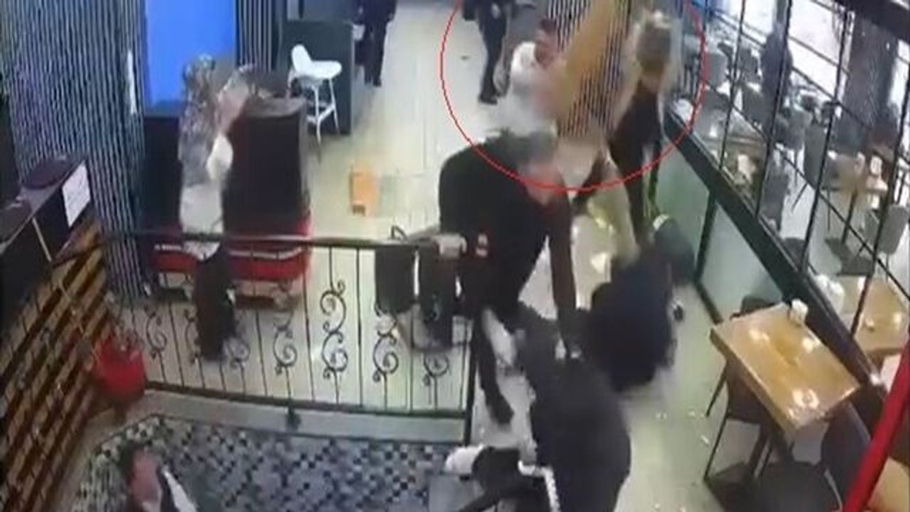 Kısa sürede büyüyen tartışma kavgaya dönüştü. Masa ve sandalyeler ile iş yerindeki bazı eşyaları birbirine atan taraflar diğer müşterilerin araya girmesi ile güçlükle ayrılırken, kavga güvenlik kamerasına yansıdı.