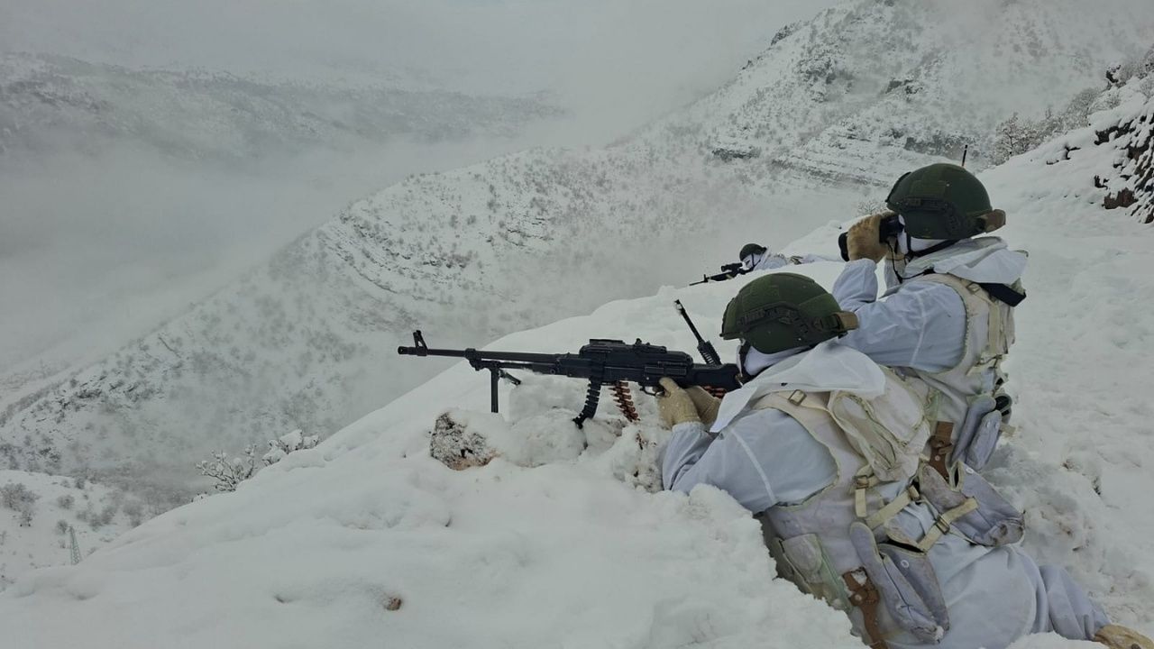 MSB’nin paylaşımına göre Mehmetçik, karla kaplı dağlık bölgelerde, soğuğa ve zorlu arazi koşullarına uygun kamuflajlar içinde keşif, gözetleme, pusu ve devriye faaliyetlerini aralıksız sürdürüyor. Sınır hattında görev yapan birliklerin, terör ve kaçakçılık başta olmak üzere her türlü yasa dışı geçişe karşı teyakkuzda olduğu vurgulandı.