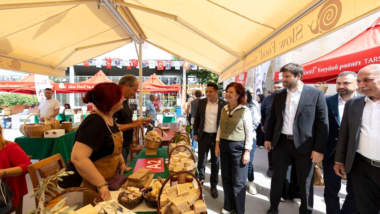Etkinlik öncesinde Mersinden Kadın Kooperatifi Başkanı Meral Seçer ve Tarsus Belediye Başkanı Ali Boltaç, Slow Food Yeryüzü Pazarı'nı ziyaret ederek üreticilerle bir araya geldi. Pazar alanında, kurutulmuş meyveler, lavanta yağları, kömbe, Karakuş tatlısı ve ahşap ürünler gibi yöresel el emeği ürünler sergilendi.