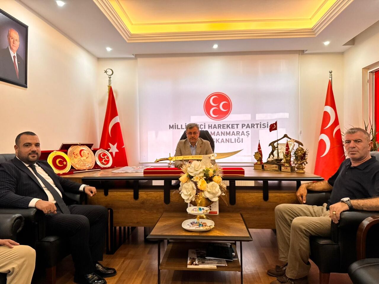 Ziyarette konuşan Mesut Şahinkanat, şu ifadelere yer verdi: “Türkün Ak Saçlısı, Bilge Liderimiz Genel Başkanımız Sn. Dr. Devlet Bahçeli’nin takdirleri, Teşkilatlardan Sorumlu Genel Başkan Yardımcımız Sn. Edip Semih Yalçın’ın tensipleriyle MHP Kahramanmaraş İl Başkanlığı görevine atanan Sn. Mansur Metehan Başkanımıza hayırlı olsun ziyaretimizi gerçekleştirdik. Nazik misafirperverliği için kıymetli başkanımıza teşekkür ediyor, devraldığı bu kutlu görevde Ülkücü Hareket’e ve Aziz Milletimize hizmet yolunda üstün başarılar diliyorum.”