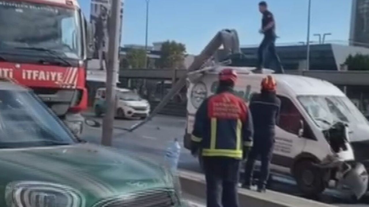 Avcılar D-100 karayolunda kontrolden çıkan minibüs aydınlatma direğine çarptı. Direk yola devrildi, trafik bir süre aksadı.