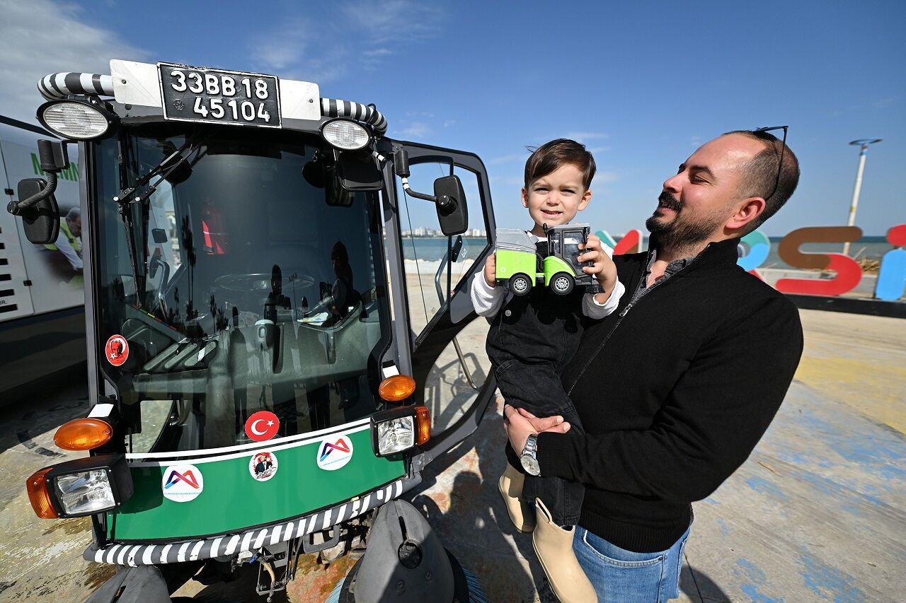 Mersin'de yaşayan 3 yaşındaki minik Ayaz’ın süpürge araçlarına olan ilgisi, sosyal medyada paylaşıldıktan sonra büyükşehir belediyesi tarafından fark edildi. Ayaz’ın, özellikle yeşil süpürge kamyonuna olan sevgisi, ailesi tarafından sosyal medya üzerinden duyurulunca, Mersin Büyükşehir Belediyesi harekete geçti. Çevre Koruma ve Kontrol Dairesi Başkanlığı ekipleri, Ayaz için özel bir sürpriz hazırlayarak, minik hayranını sevindirdi.