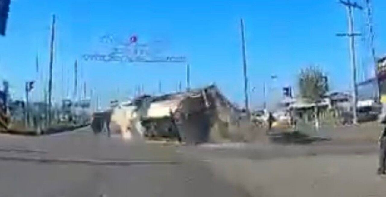 Kaza anı, o sırada kavşakta bulunan bir başka otomobilin araç içi kamerasına anbean yansıdı. Görüntülerde, tırın kavşağa girdiği andan itibaren dorsesinin sola doğru yattığı ve ardından tüm heybetiyle yere çakıldığı görüldü. Tırın devrilmesiyle birlikte yoldan yükselen yoğun toz bulutu çevreyi kaplarken, kazanın şiddeti görüntülerin ne kadar korkutucu olduğunu bir kez daha gözler önüne serdi. Görüntülerde ayrıca, tırın devrildiği noktaya yakın başka araçların olmaması faciayı önleyen en büyük etken olarak dikkat çekti.