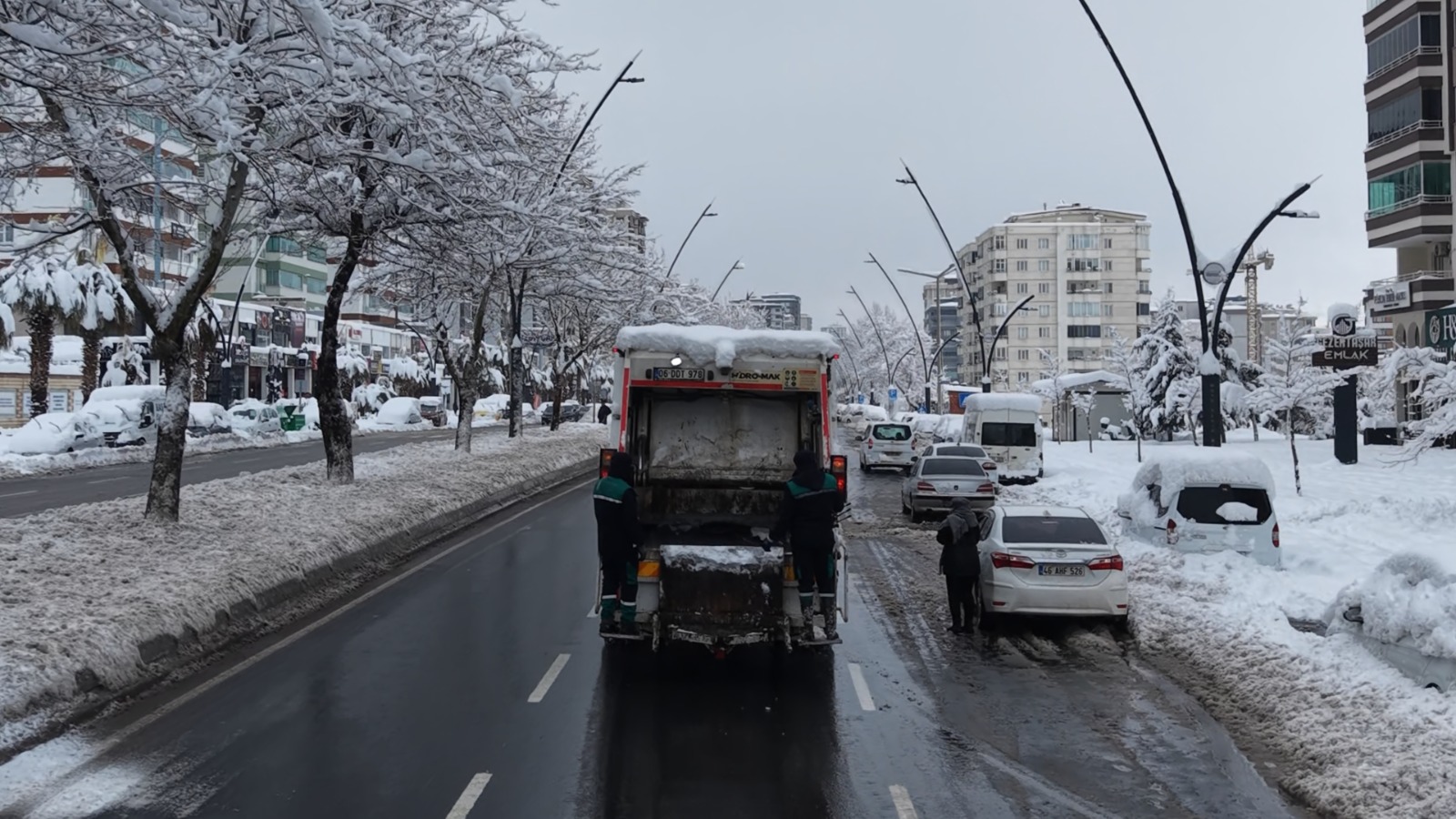 Kahramanmaraş’ta etkisini artırarak devam eden yoğun kar yağışı, hayatı zorlaştırsa da belediye hizmetleri kesintisiz devam ediyor. Onikişubat Belediyesi, zorlu kış şartlarına rağmen özellikle temizlik ve çöp toplama hizmetlerinde aksamaya yer bırakmıyor.