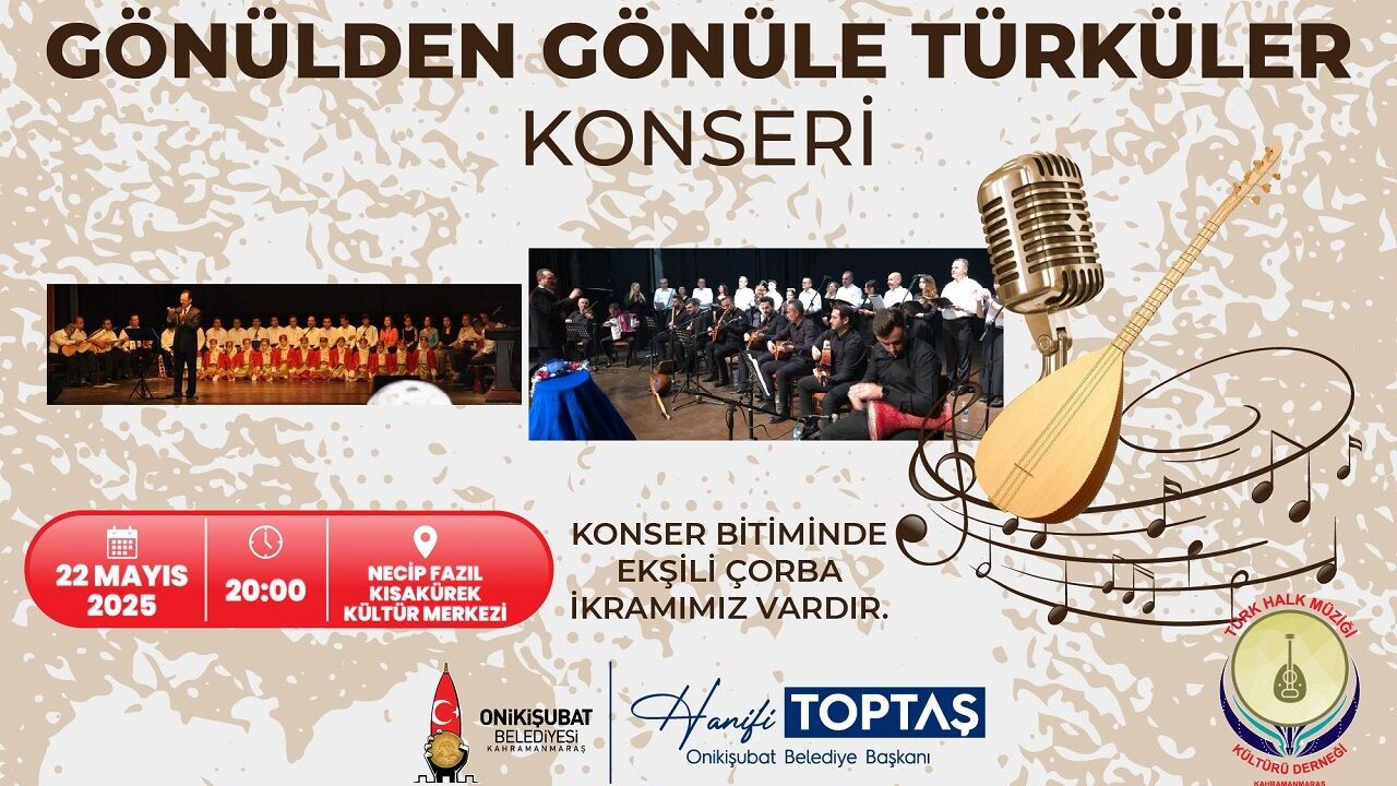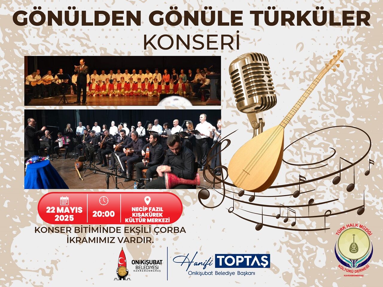 Onikişubat Belediyesi, kültür ve sanat etkinlikleri kapsamındaki programlarına bir yenisini daha ekledi. Türk Mutfağı Haftası kapsamında düzenlenecek olan “Gönülden Gönüle Türküler Konseri” 22 Mayıs Perşembe günü saat 20.00’de Necip Fazıl Kısakürek Kültür Merkezi’nde gerçekleştirilecek. Etkinlik, müzikseverlere unutulmaz bir akşam sunarken, Kahramanmaraş’ın yöresel mutfağından seçkin tatların tanıtımına da zemin hazırlayacak.