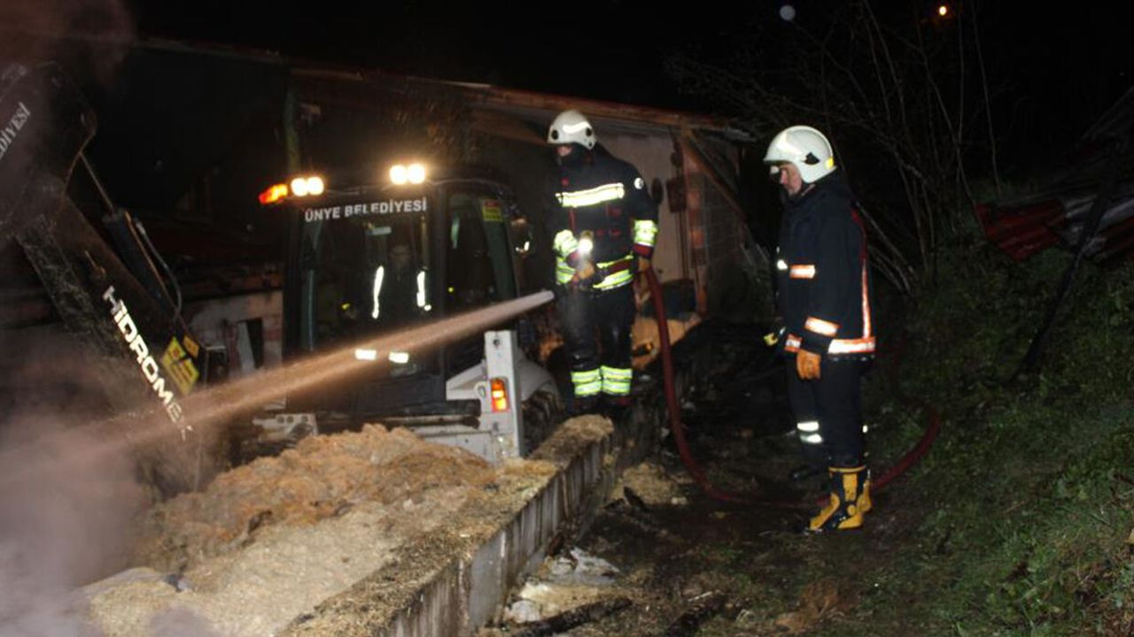 Çatı katında ve samanlık bölümünde başlayan yangını, ahır sahiplerinin yangını fark etmesiyle bölgeye çok sayıda itfaiye, jandarma ve sağlık ekibi sevk edildi. Ordu Büyükşehir Belediyesi Ünye İtfaiye Grup Amirliği ekipleri, büyüyen alevlere müdahale etti. Yaklaşık 2 saat süren yoğun çalışma sonucunda yangın kontrol altına alınarak söndürülürken, soğutma çalışmaları devam etti.