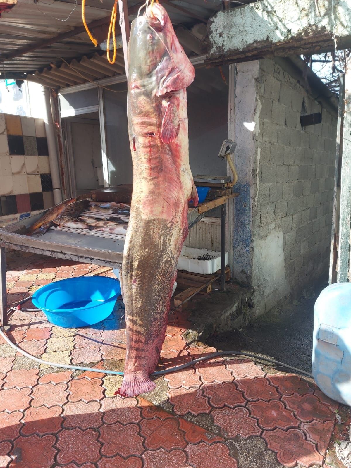 Osmaniye’nin Düziçi ilçesinde yakalanan 2 metrelik dev yayın balığı, hem boyu hem de ağırlığıyla dikkat çekti. Akşam saatlerinde Aladağ bölgesinde ağ atan balıkçıların sabah topladıkları ağlarda karşılaştığı manzara, bölgede günün konusu oldu. 98 kilogram ağırlığındaki yayın balığı, tezgâhta sergilenmeye başlanınca vatandaşlar da merakla balığı görmeye geldi. Dev balık, yalnızca boyutuyla değil, satış fiyatıyla da ilgi gördü. Kilogramı 500 TL’den satışa sunulan yayın balığı, kısa sürede sosyal medyada da paylaşıldı.