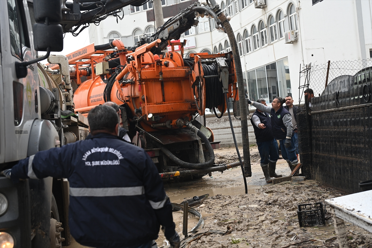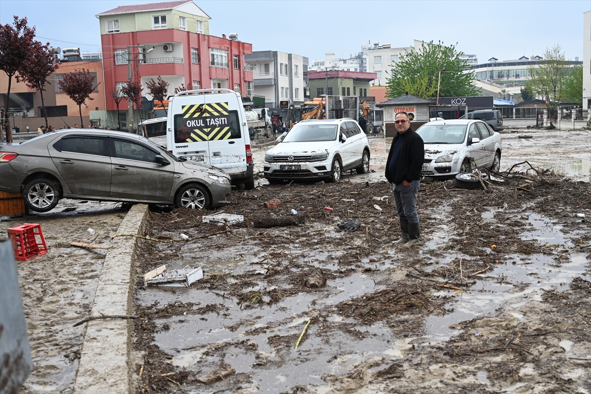 Çevre ilçelerden gelen belediye ekiplerinin de desteğiyle selde sürüklenen araçların kurtarılması için çalışma gerçekleştiriliyor.