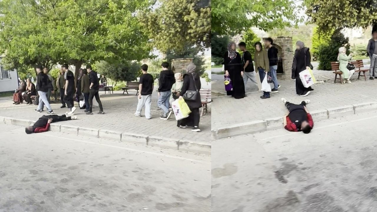 Olayı fark eden çevre sakinleri durumu cep telefonu kameralarıyla kaydetti. Görüntülerde şahsın otobüs durağının hemen yanında yerde yattığı ve uzun süre kendine gelemediği görüldü.