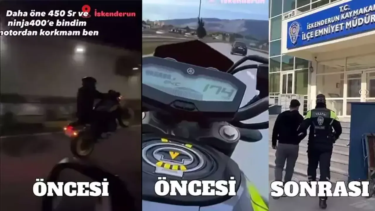 İlçedeki otoyolda motosikletiyle 174 kilometre hızla ilerleyen İ.A., aracının ön tekerini kaldırdığı anları görüntüleyip sanal medyada paylaştı. Paylaşımı ihbar kabul eden İlçe Emniyet Müdürlüğü ekipleri, İ.A.'yı gözaltına aldı.
