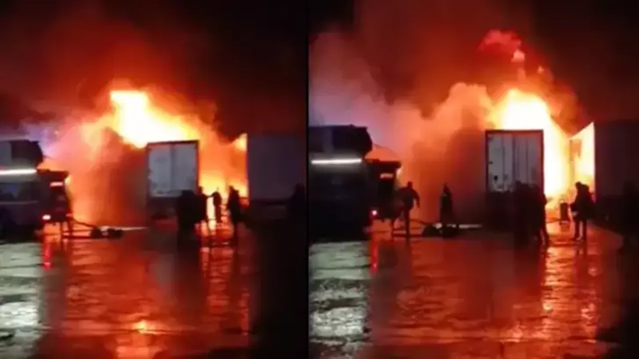 Hopa ilçesindeki TIR parkında bulunan 2 TIR'da, gece saatlerinde henüz belirlenmeyen nedenle yangın çıktı. Alevler kısa sürede iki aracı da kapladı. İhbarla bölgeye gelen itfaiye ekipleri, yangına müdahale etti.