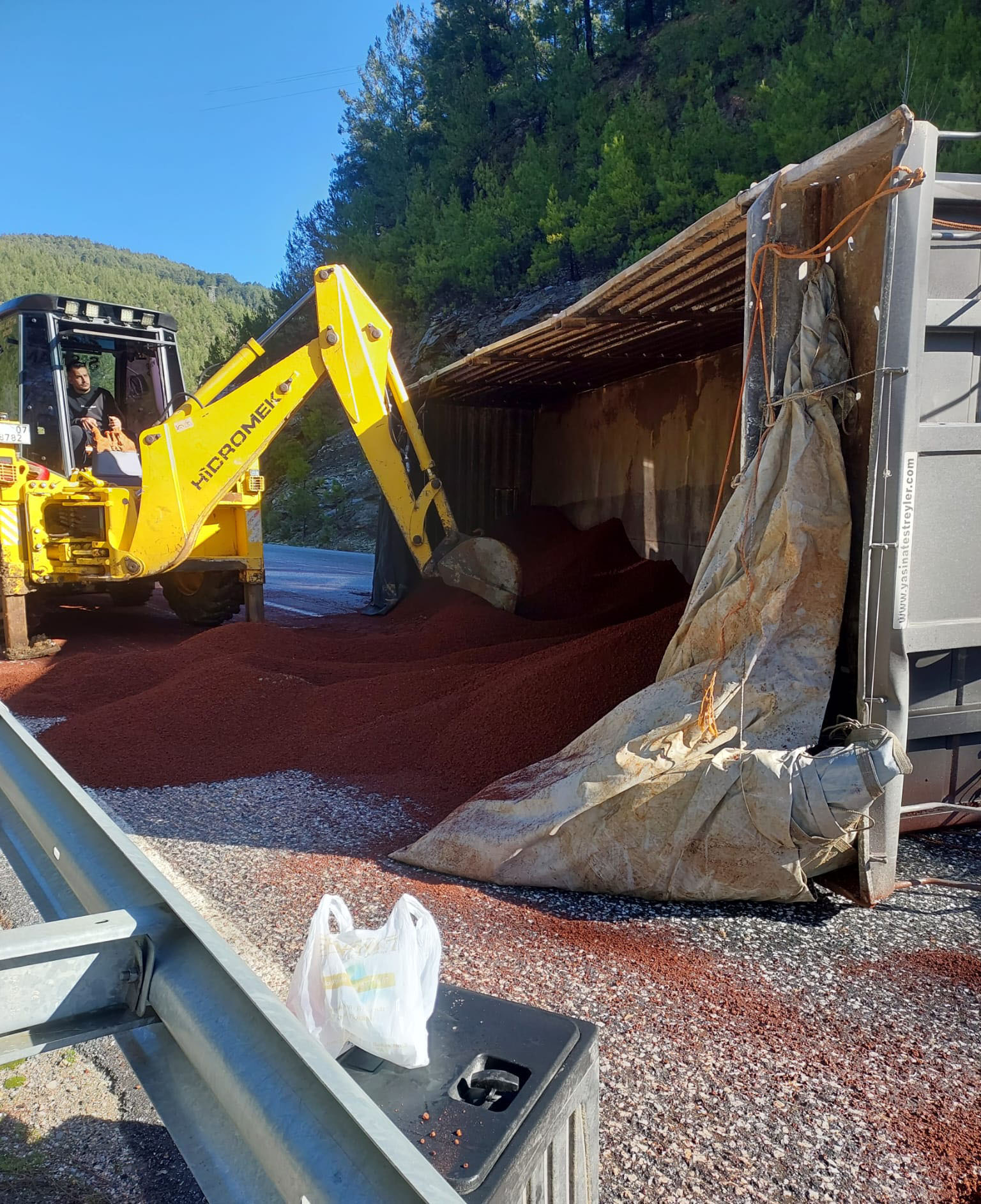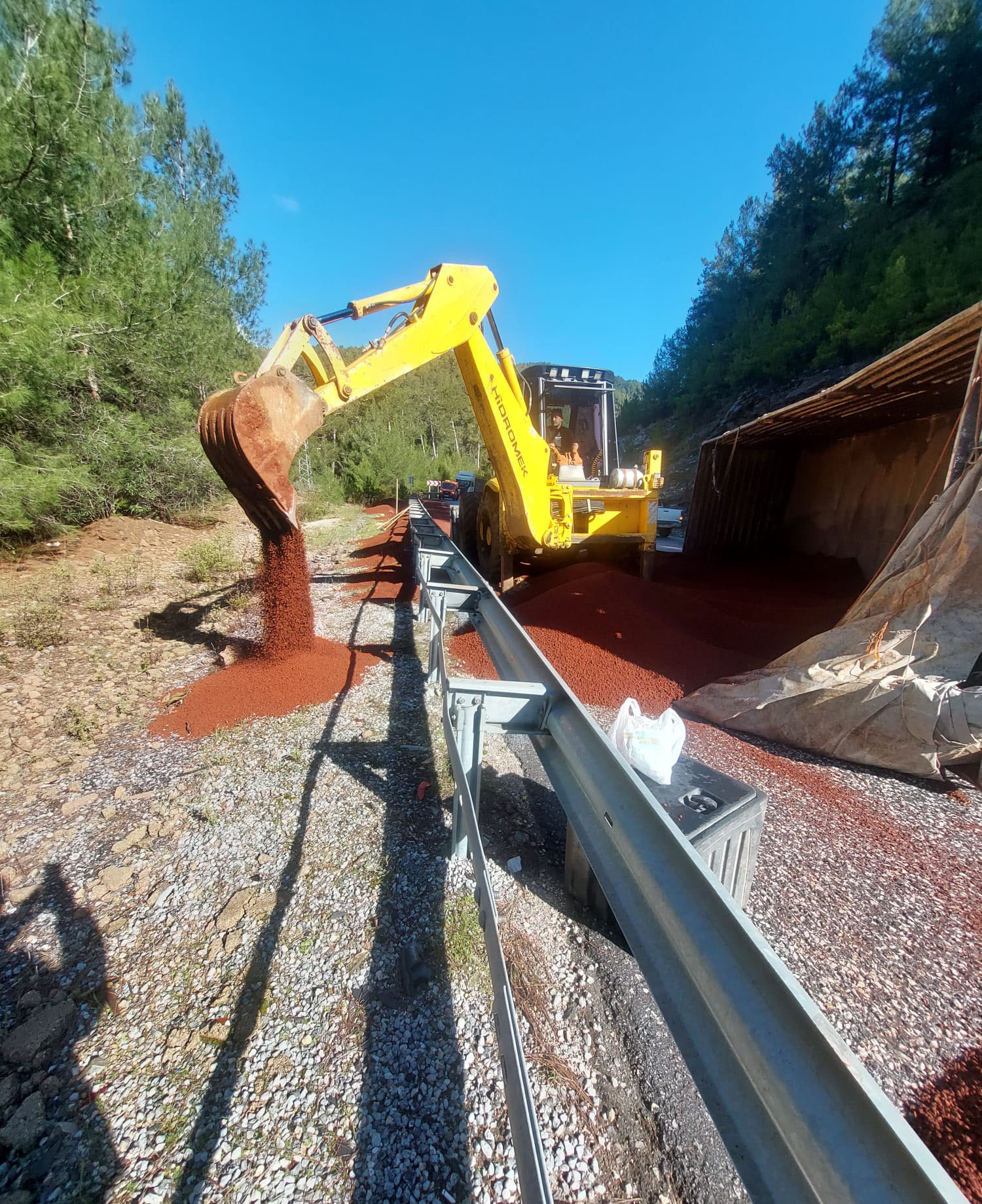 Kazanın ardından olay yerine trafik ekipleri ile Karayolları ekipleri sevk edildi. Devrilen tır nedeniyle kara yolunun bir şeridi ulaşıma kapandı.