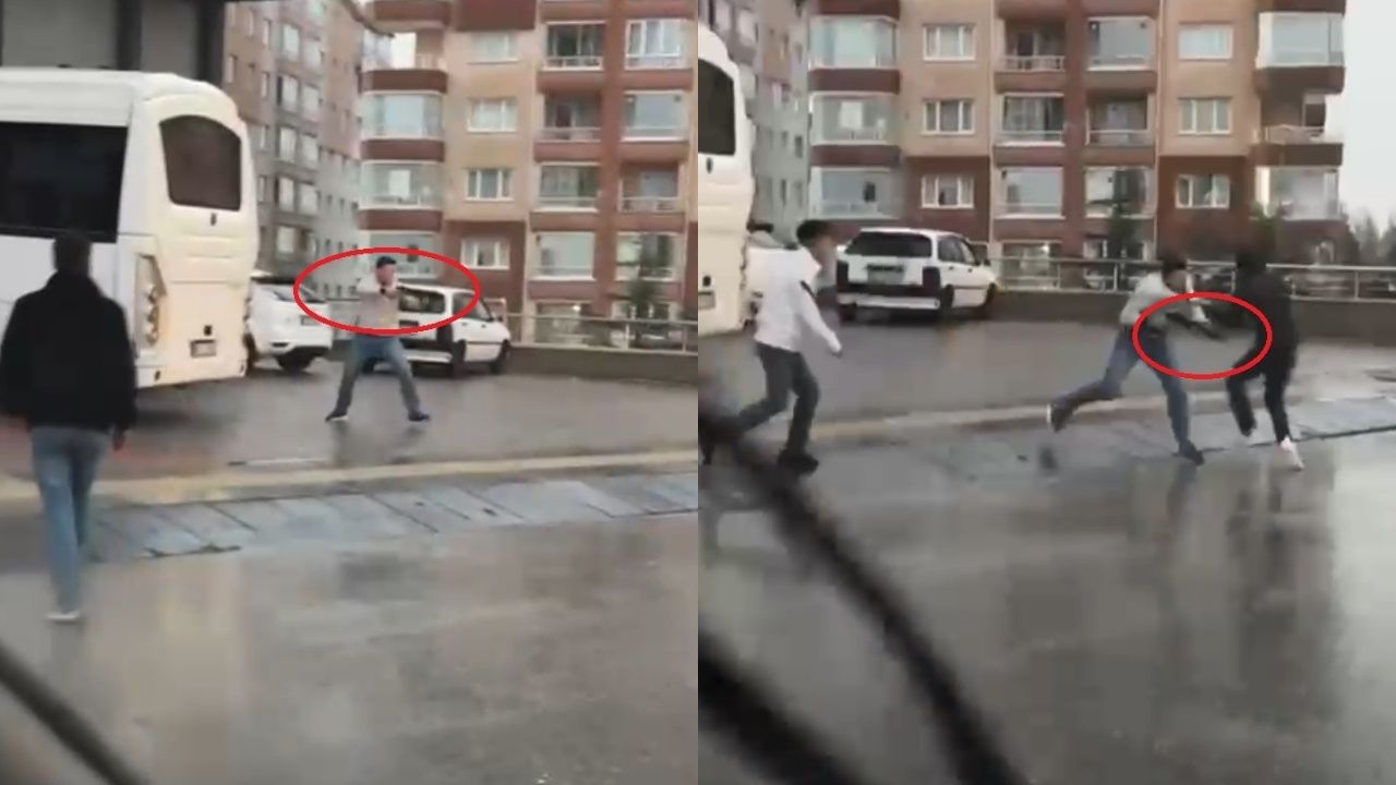 Ankara’nın Mamak ilçesinde yaşanan silahlı kavga, cep telefonu görüntüleriyle ortaya çıktı. Husumetli iki grup arasında çıkan tartışma kısa sürede büyürken, olayda pompalı tüfek kullanılması paniğe neden oldu. Sosyal medyada paylaşılan görüntüler sonrası polis ekipleri harekete geçti. Kavgaya karıştığı belirlenen 2 şüpheli gözaltına alınırken, olayla ilgili soruşturma sürüyor.