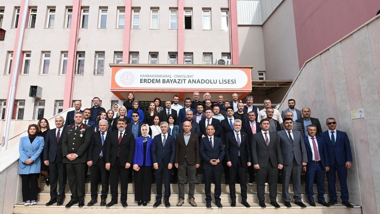 Kahramanmaraş Valisi Mükerrem Ünlüer, 24 Kasım Öğretmenler Günü dolayısıyla Erdem Bayazıt Anadolu Lisesi’ni ziyaret ederek öğretmenlerle bir araya geldi. Ziyarete Kahramanmaraş Milletvekili Ömer Oruç Bilal Debgici, Garnizon Komutanı Tuğgeneral Mahmut Sert, Büyükşehir Belediye Başkanı Fırat Görgel, İl Emniyet Müdürü Hasan Yiğit ve İl Milli Eğitim Müdürü Erhan Baydur da katıldı.