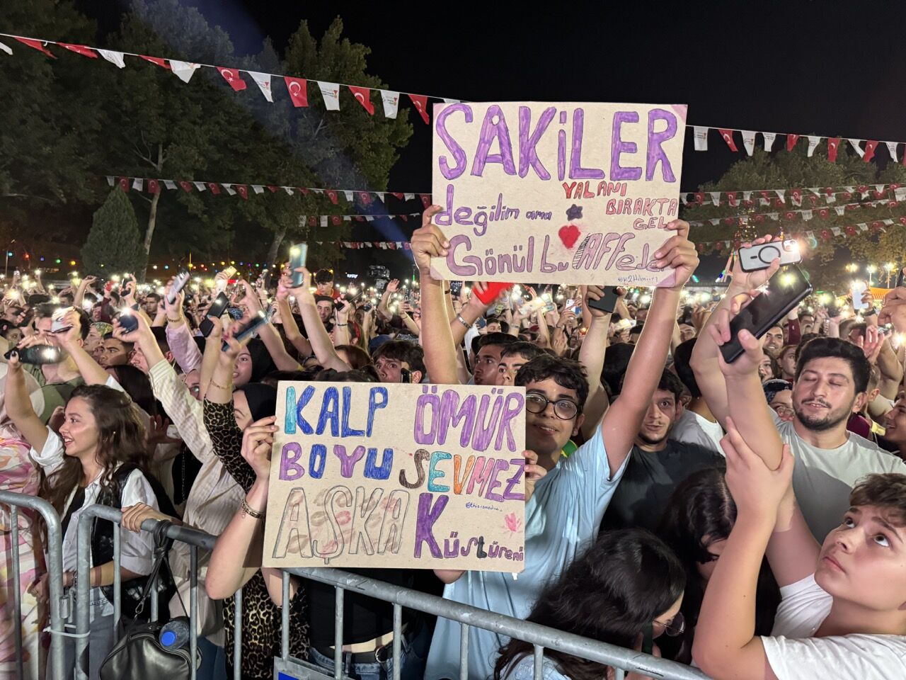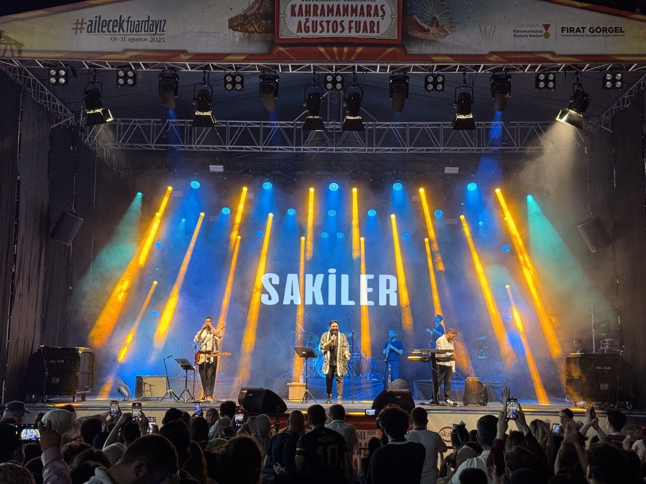 Kahramanmaraş Fuar Merkezi'nde gerçekleştirilen etkinlikte binlerce müziksever, sevilen şarkılarıyla gönüllere taht kuran Sakiler grubunun performansını izlemek için alanı doldurdu.